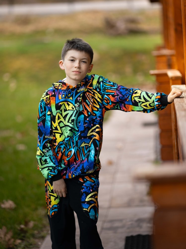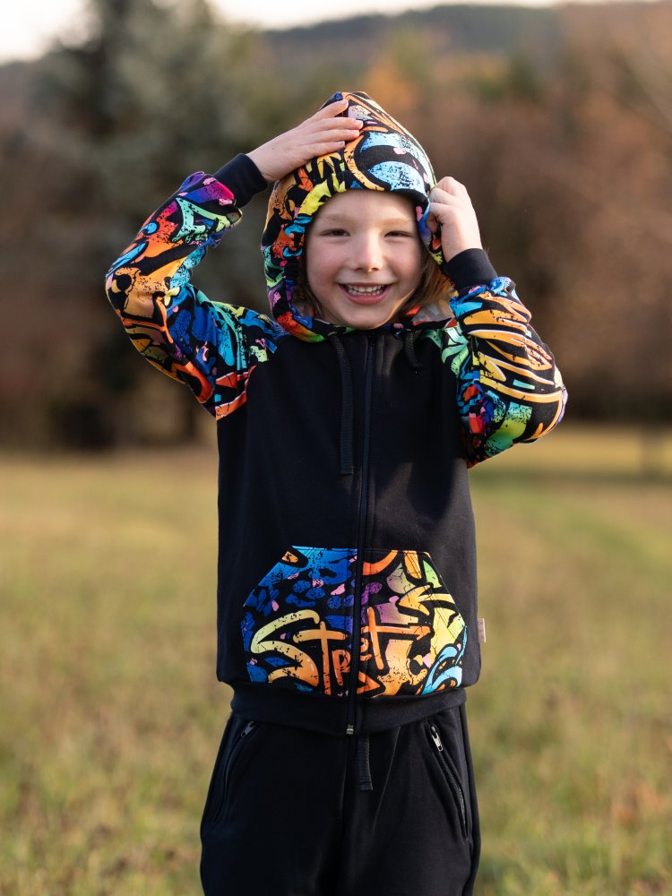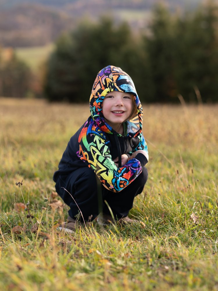 Graffiti Boom je prostě výraz osobnosti. Každý kousek má jiný příběh, každý šev energii. Děti se v něm cítí svobodně, pohodlně a zároveň stylově – a to je kombinace, která prostě funguje! 🎨